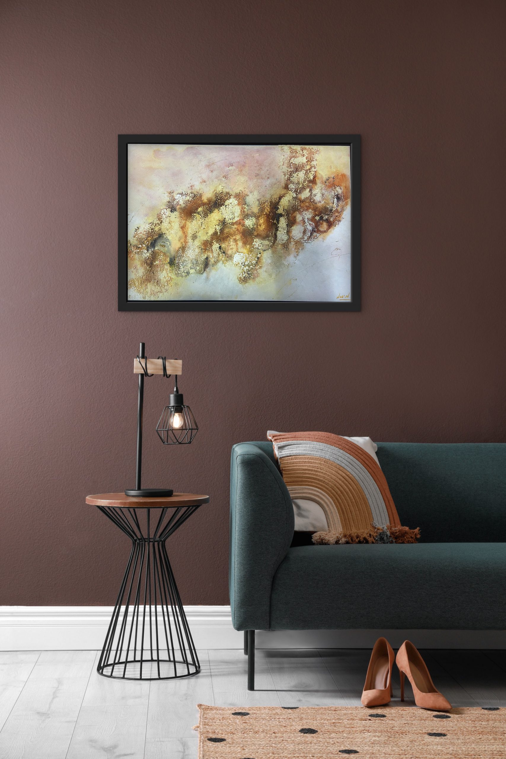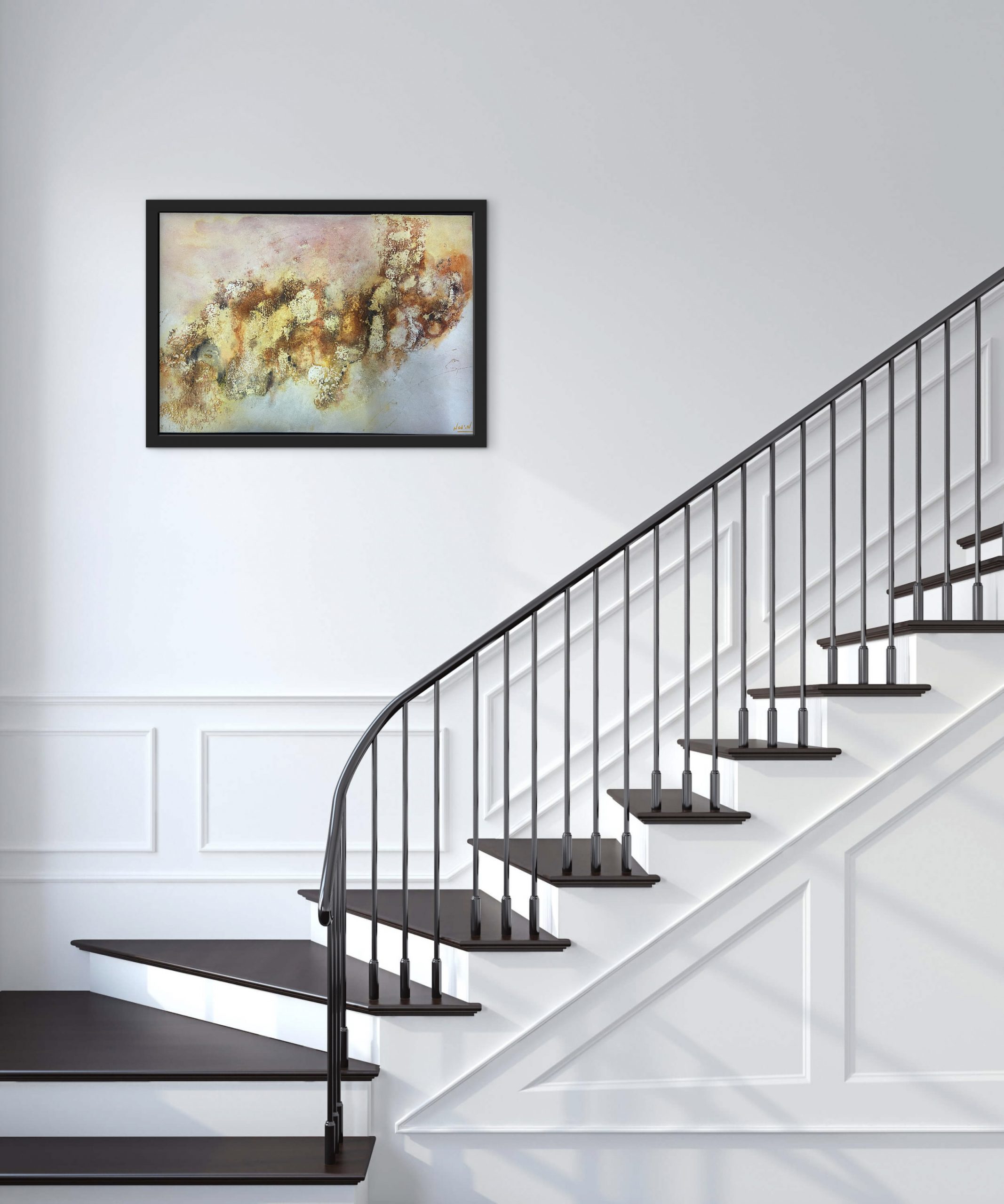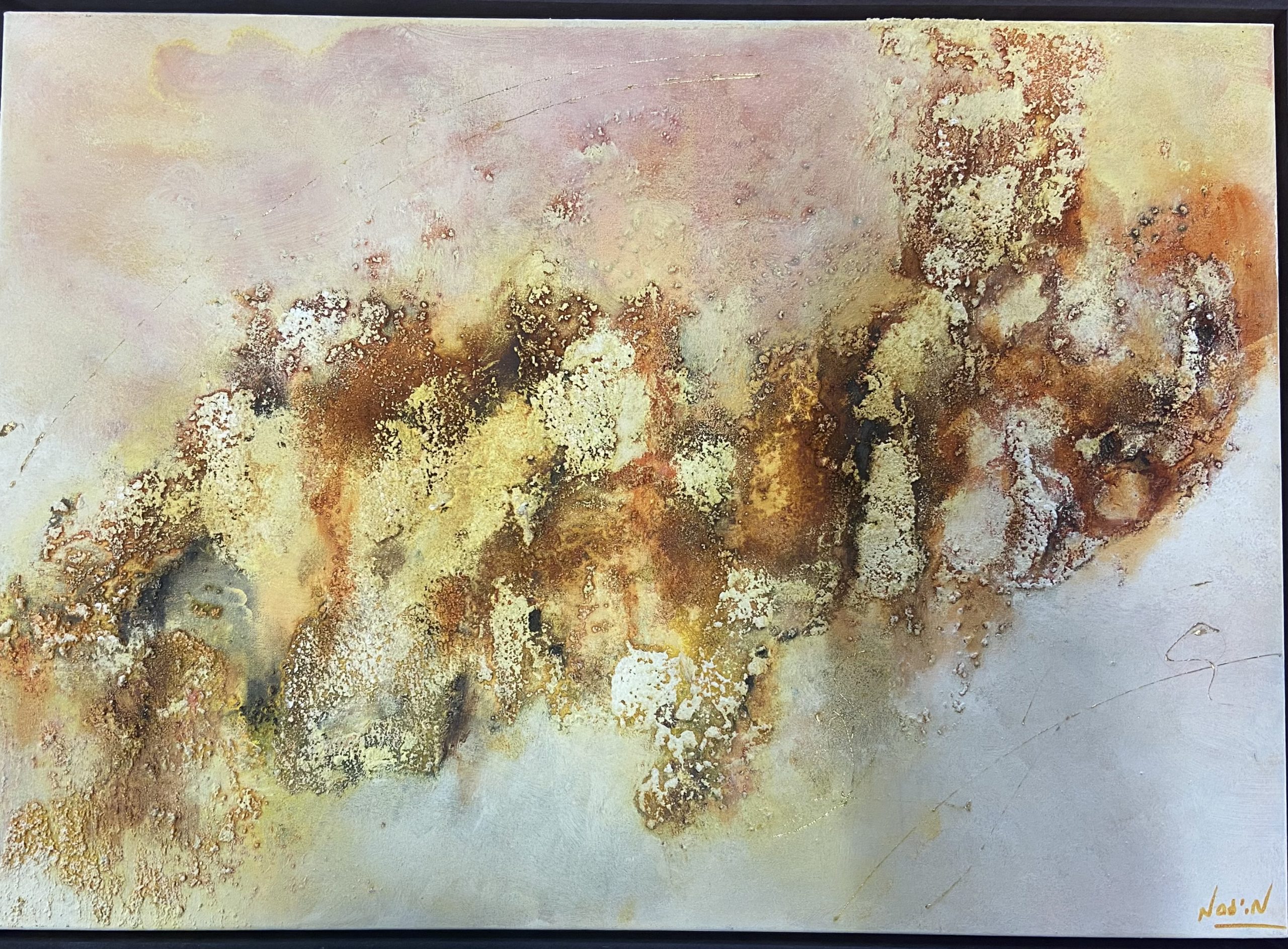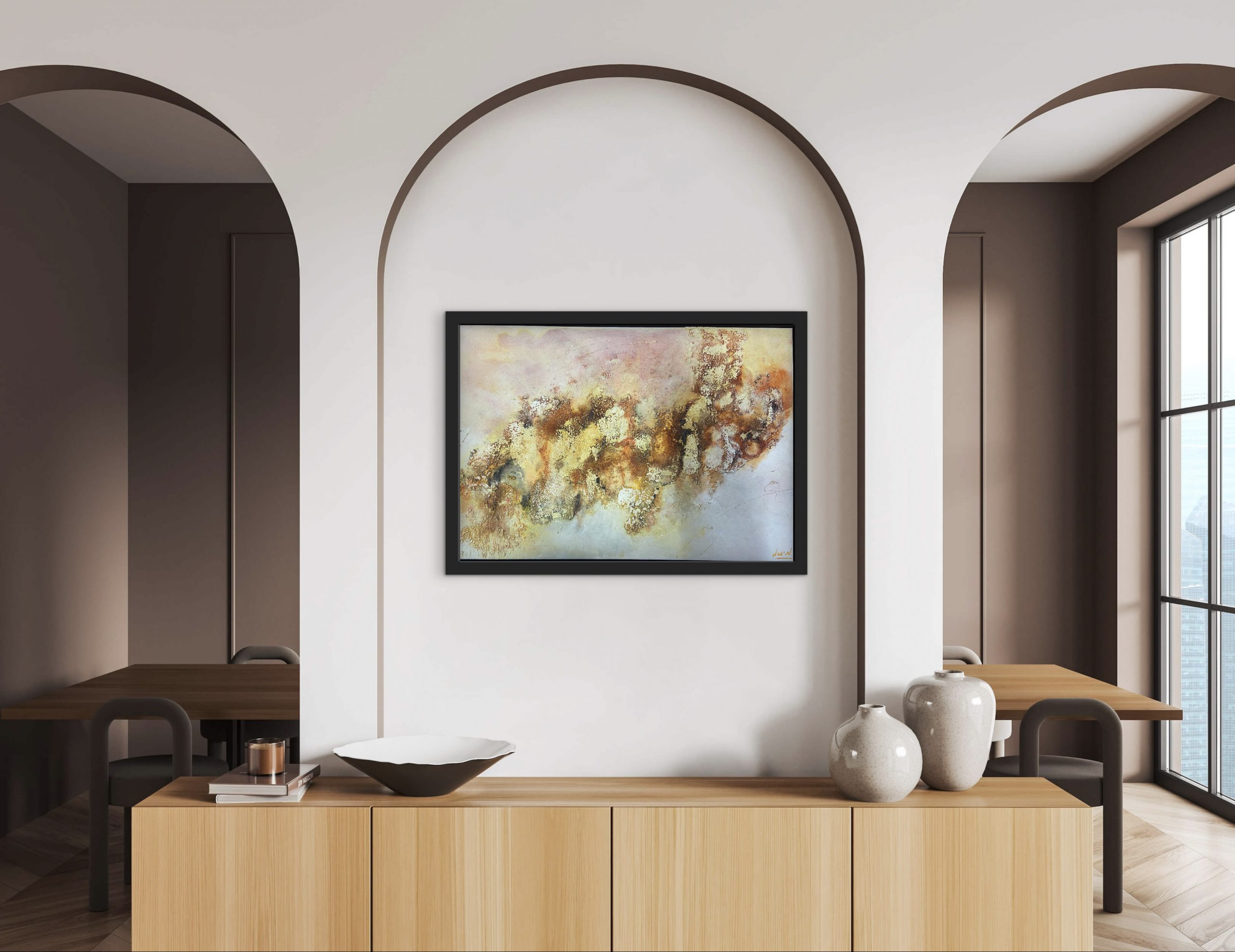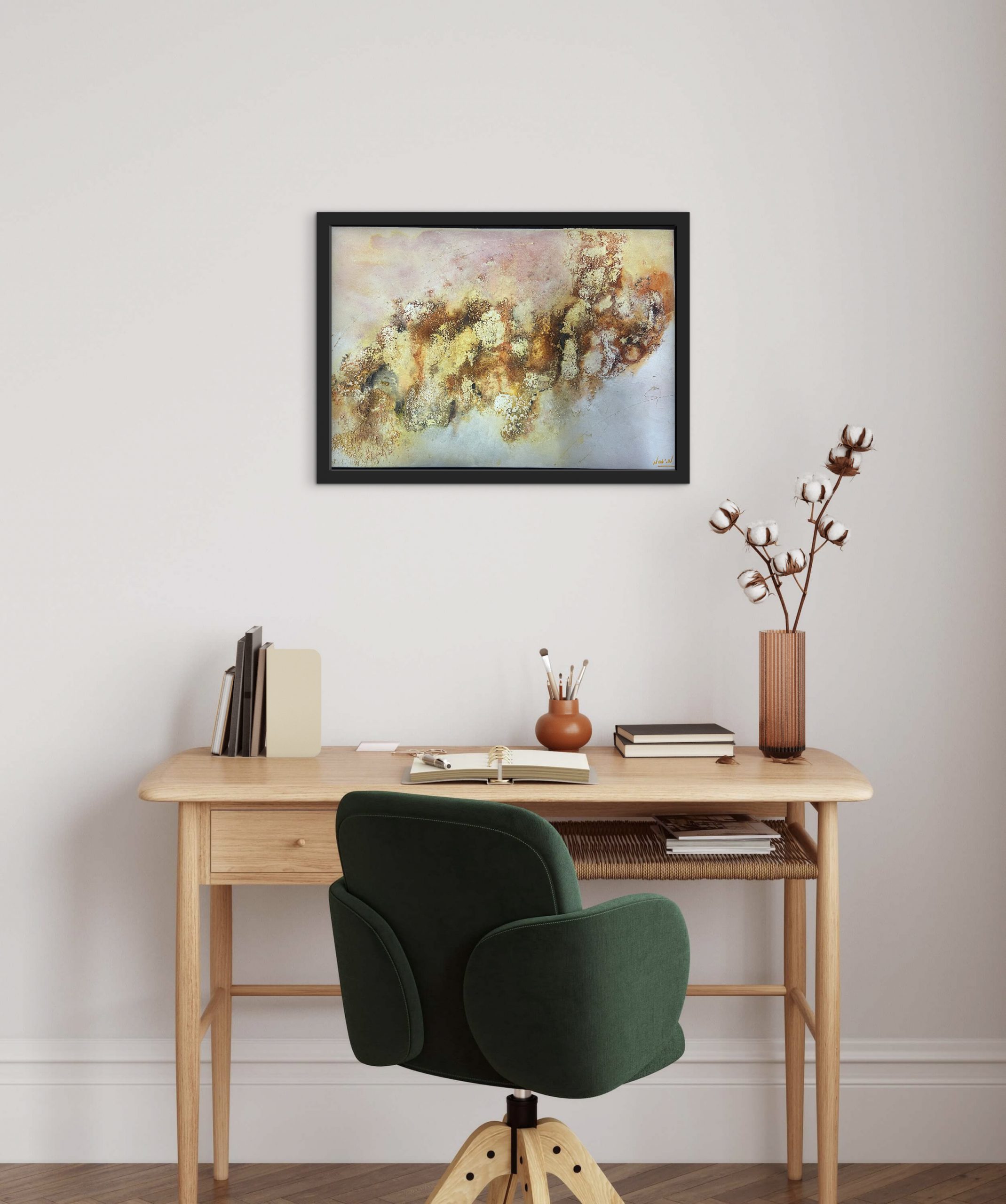 Les teintes chaudes et dorées de cette œuvre évoquent la douceur d’un rayon de soleil traversant les feuilles d’automne. Une invitation à ressentir la chaleur, la transformation et la lumière intérieure.