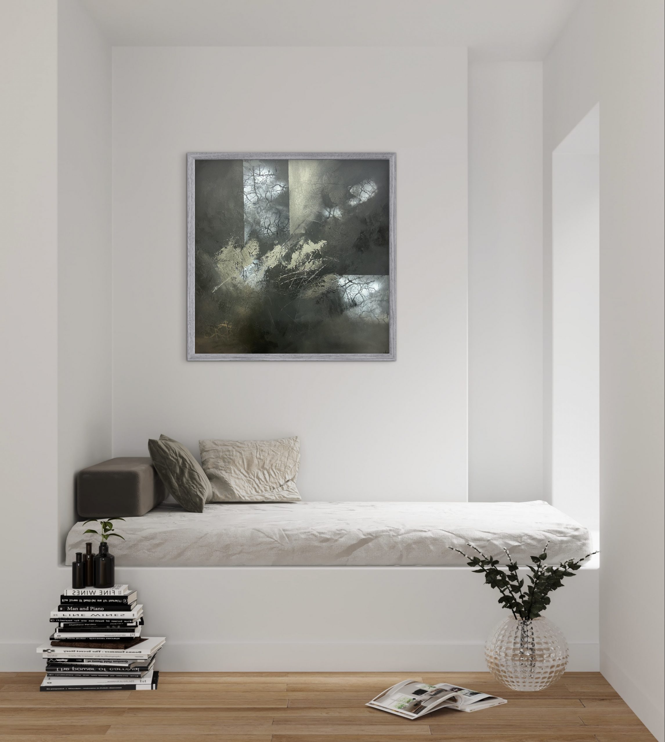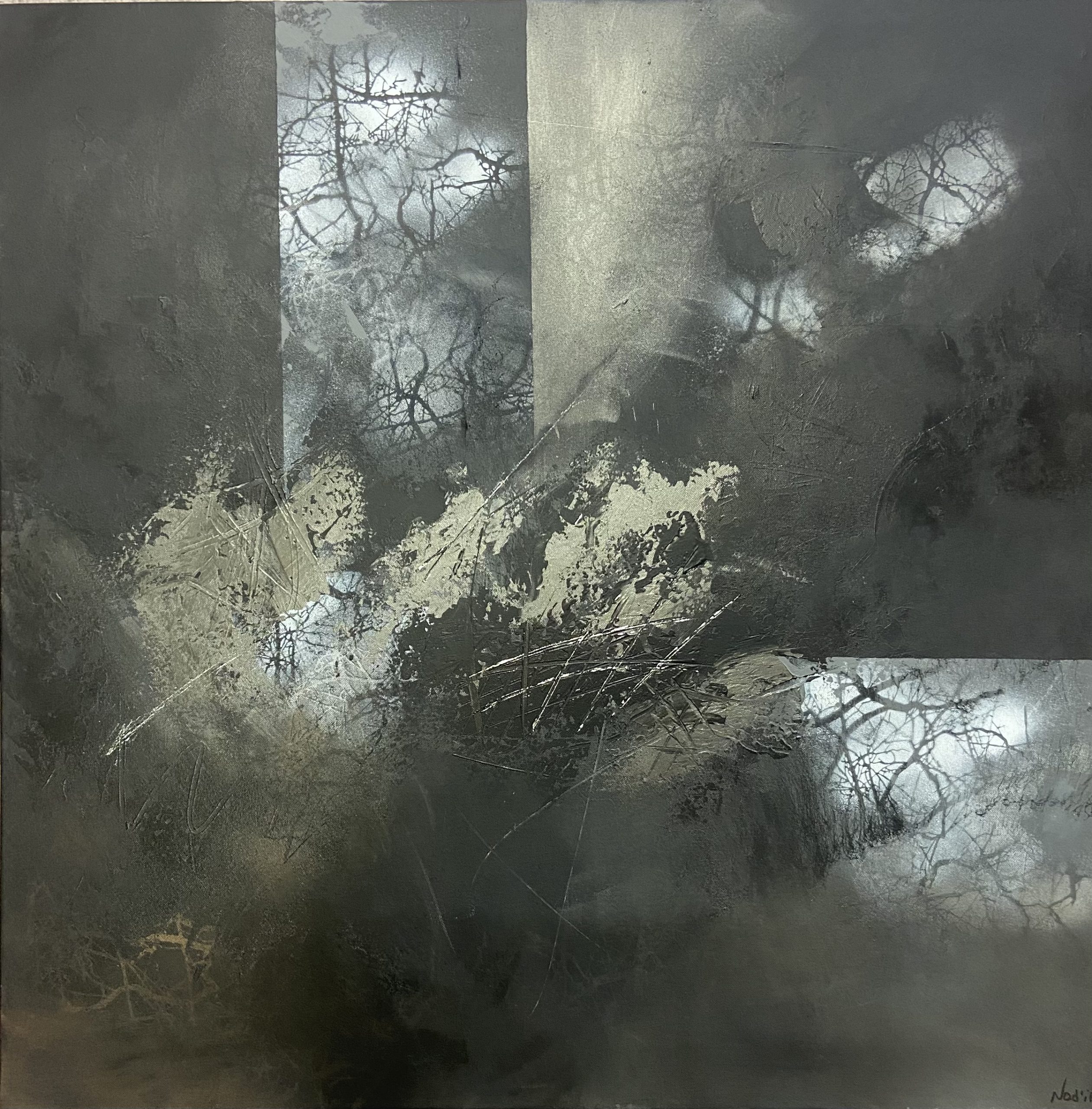 Dans cette toile, les ombres et la lumière se frôlent comme deux forces en quête d’équilibre. Les textures se superposent, se heurtent, se caressent, révélant des paysages intérieurs à la fois bruts et délicats.Les éclats clairs surgissent comme des percées d’espoir dans une atmosphère dense et profonde, tandis que les zones sombres semblent retenir le souffle du monde.L’œuvre invite à contempler ce qui émerge quand le chaos se fissure : une lumière fragile, mais insistante, qui persiste malgré tout.Une exploration intime de ce qui se transforme, se dissimule et renaît dans les interstices du visible.